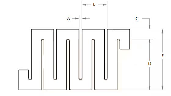 The Cantilever V Spring chart below shows the standard dimensions of the Standard V Cantilever/Meander type springs. All dimensions are subject to standard manufacturing print tolerances. Those tolerances may be requested if needed. Each Cantilever V Spring is manufactured in its own standard tool & die set.